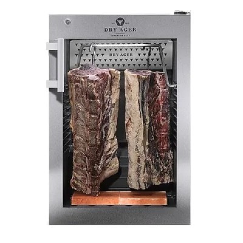 Шкаф DRY AGER DX0500PS предназначен для сухого вызревания говядины, а также производства мясных закусок и колбасных изделий на предприятиях пищевой промышленности, общественного питания и торговли. Модель оснащена электронным контроллером температуры и влажности, откидным дном, интегрированными рейками и регулируемыми по высоте ножками. Дверная рама выполнена из нержавеющей стали, корпус - из стали, окрашенной порошковой краской, дверца - из стекла с УФ-фильтром..Особенности:DX AIRREG: оптимальный воздушный поток, позволяющий сохранять нужный микроклимат внутри, фильтр из активированного угля и система стерилизации воздуха внутри шкафаАвтоматическое размораживаниеПредустановленные программы для вызревания мясаНезначительные потери в весе: от 7 до 8% после 4 недель вызреванияПеренавешиваемая дверьВстроенная в боковые стенки светодиодная подсветка DX LED PremiumДополнительные характеристики:Максимальная загрузка:2 туши длиной до 0,5 м20 кг на полкахОбъем:Общий: 147 лПолезный: 132 лОтделка корпуса: сатинированная черная
