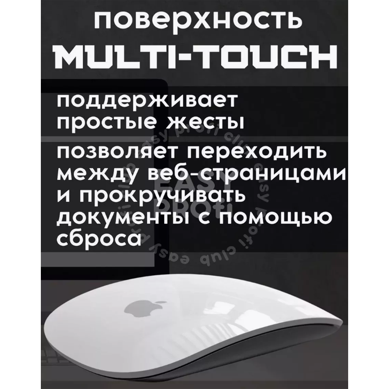Беспроводная мышь Magic Mouse работает от встроенного аккумулятора и легко скользит по рабочей поверхности благодаря цельному основанию. Ее поверхность Multi-Touch поддерживает простые жесты, например, позволяя переходить между веб-страницами и прокручивать документы с помощью смахивания. Мышь Magic Mouse способна работать без подзарядки аккумулятора примерно в течение месяца - и даже дольше. Она не требует настройки и автоматически подключается к вашему Mac. В комплект входит кабель USB-C/Lightning в оплетке - с его помощью мышь можно подключать к Mac для зарядки от порта USB-C.