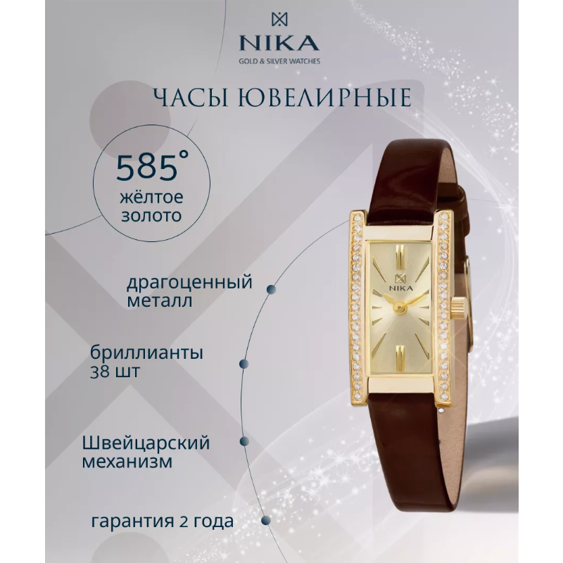 Женские часы из коллекции Lady обладают волевым характером и тонкой огранкой. Прямоугольный золотой корпус с двух сторон декорирован бриллиантами или фианитами. По периметру циферблата расположились золотистые метки. Эта модель, как и любая вечная классика, никогда не перестанет быть привлекательной! ХАРАКТЕРИСТИКИ: Средний вес драгметалла :Золото - 6,033 г Размер ушка: 10 Габаритный размер: 15,5 х 29,2 мм Габаритная высота: 7,25 мм Форма корпуса: прямоугольник Вставка: бриллианты Стекло: минеральное с сапфировым напылением Цвет циферблата: шампань Тип механизма: Кварцевый Механизм: Ronda 1032, ШВЕЙЦАРИЯ Функции: часы, минуты Материал ремешка: натуральная кожа Водостойкость: 1АТМ Элемент питания: 317 (SR516SW)