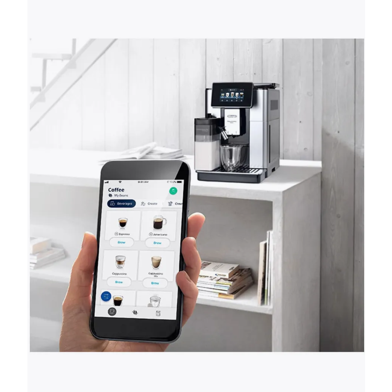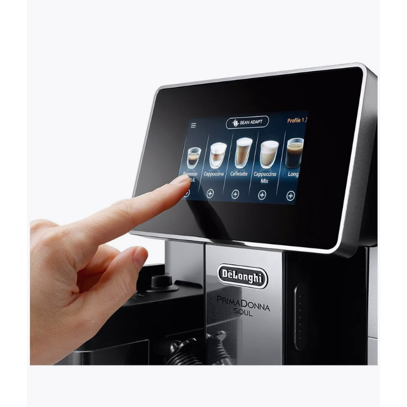 Готовить десятки кофейных напитков на любой вкус совсем не сложно, если вы уже купили кофемашину DeLonghi ECAM 610.55 SB PrimaDonna Soul. Один из самых современных комплексов для домашнего использования, по возможностям приближающийся к профессиональным устройствам к вашим услугам. Высокая мощность (1450 Ватт) гарантирует практически мгновенную подготовку к работе после включения, а «умная» электронная начинка полностью берет под контроль процесс приготовления. Все популярные композиции на основе эспрессо содержатся в памяти устройства, их можно заказать, просто нажав клавишу на сенсорной панели. Стандартное меню можно всегда расширить, подготовив собственный рецепт. Цветной TFT-дисплей отображает всю необходимую служебную информацию. Кофемашина в смартфонеТеперь возможно даже это! Сам смартфон кофе готовить все еще не сможет, зато вы с легкостью настроите кофемашину удаленно. Для этого используйте специальное фирменное приложение для устройств на базе Android Coffee Link. Связь с кофемашиной через интерфейс Bluetooth. Приготовьте свой кофе, даже не вставая с дивана. Система LatteCremaКофе, приготовленный правильно, должен иметь характерную коричневую пенку. Об этом и позаботится Система LatteCrema – ваш эспрессо будет просто идеальным. Все параметры напитка в точности соблюдаются: температура воды, количество кофе на порцию, давление. Помпа кофемашины способна нагнетать давление до 19 Бар, чтобы напиток готовился как можно быстрее, но не утрачивал при этом вкус и аромат. Стандартные возможностиКак и положено кофемашине, DeLonghi ECAM 610.55 SB PrimaDonna Soul объединяет в себе несколько устройств. Она не только варит кофе, но еще и предварительно перемалывает зерна в собственной встроенной кофемолке. Контейнер для кофейных зерен вмещает до 500 гр. Максимальный запас воды в резервуаре – 2,2 л., так что наслаждаться напитками можно в большой компании друзей. КапучинаторПредставляет собой съемный простой пластиковый кувшин для молока. Но вот его возможности приятноОписание