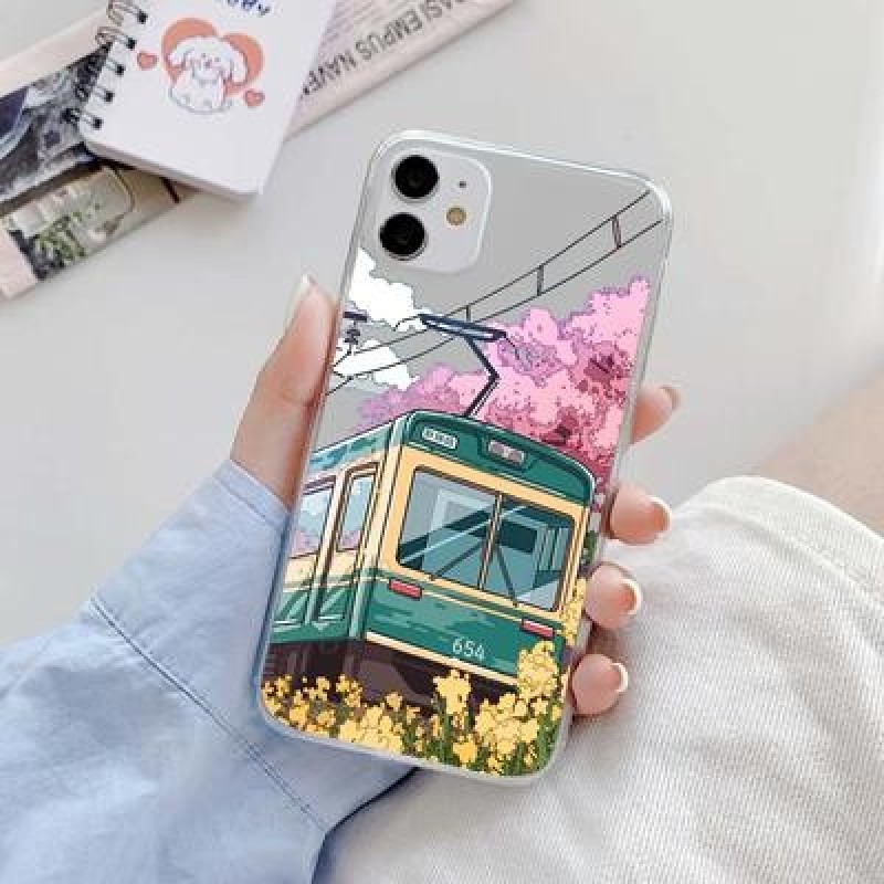 Японский эстетический прозрачный чехол Traint Moun Fuji для iPhone 14 13 12 11 Pro Max 8 7 Redmi 12C